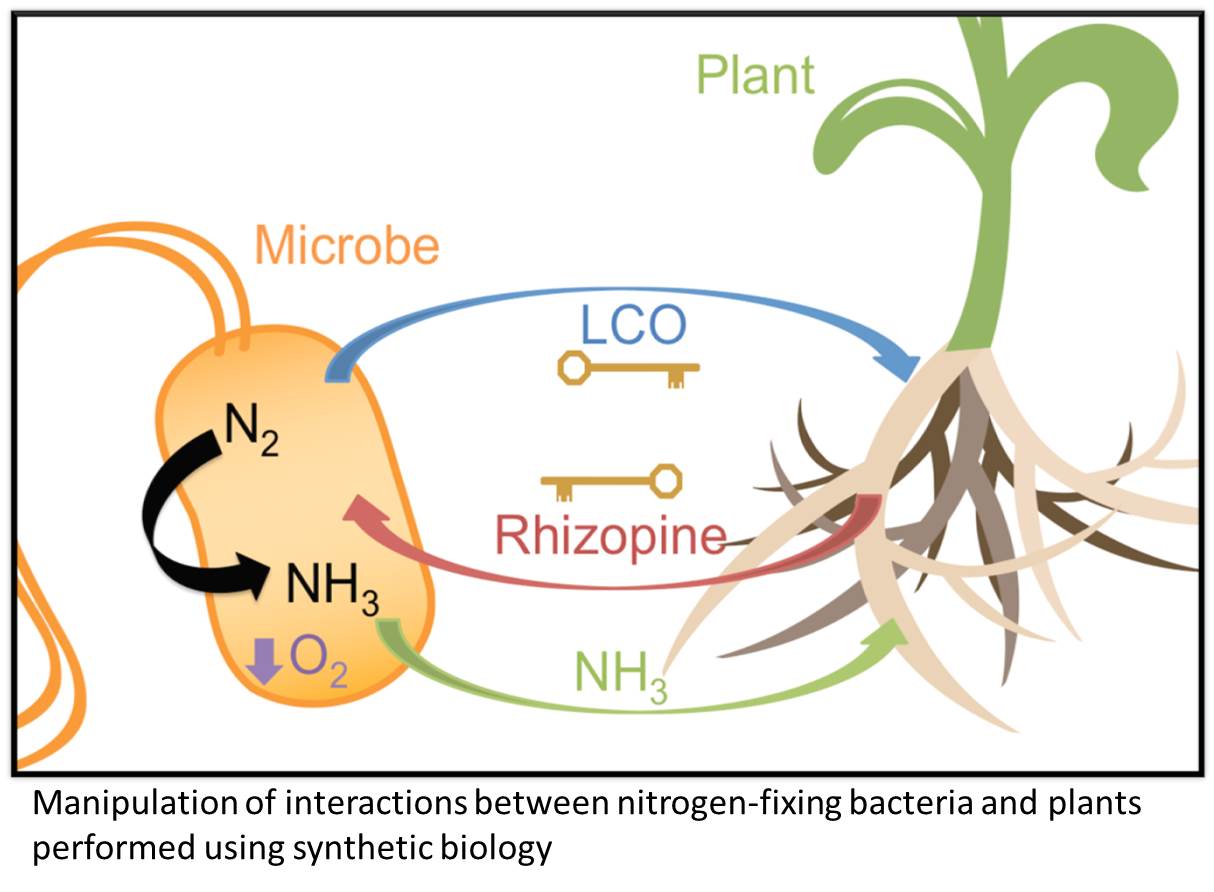 Recent advances in synthetic biology have potentiated the cross-species transfer of the genes for N fixation while enforcing synthetic control of their regulation by “refactoring” nif genes (1). The Synthetic Symbiosis project (SynSym) aims to transfer N fixation to bacteria with the pre-existing ability to associate with cereal crops. A synthetic N-fixing symbiosis will by supported by using “lock-and-key” interactions to engineer tailored associations between N-fixing bacteria and cereal crops using established exophytic and endophytic interactions. Key components of these interactions include signal exchange between bacteria and the plant, optimizing carbon supply to bacteria to fuel N fixation, supporting aerobic N fixation through oxygen protection mechanisms and interrupting bacterial N-assimilation to increase N release to the plant.